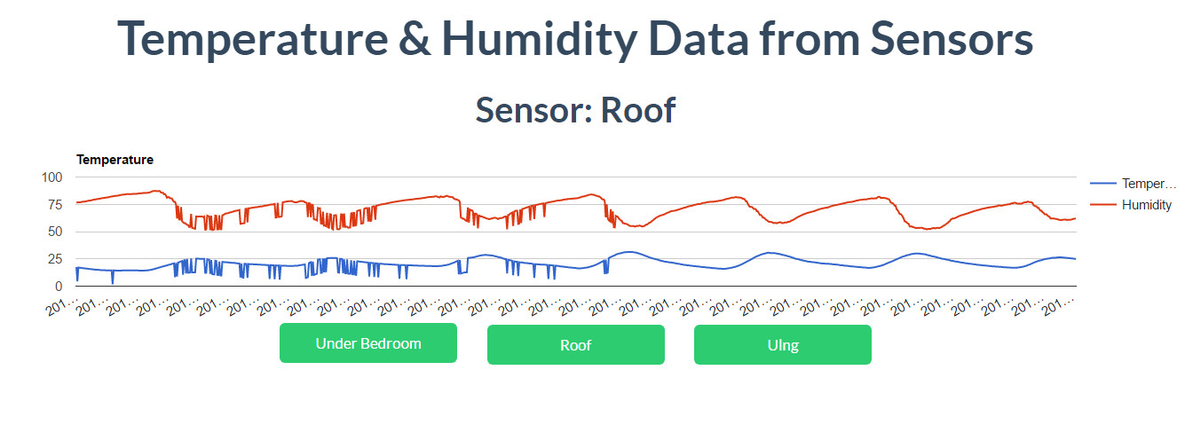 Well stage 1 is in and working. What was previously worked out has been installed and is running. At the moment I have three DHT11’s (2 under the house, 1 in the roof) measuring away every 10 minutes and getting recorded into a MySQL database.