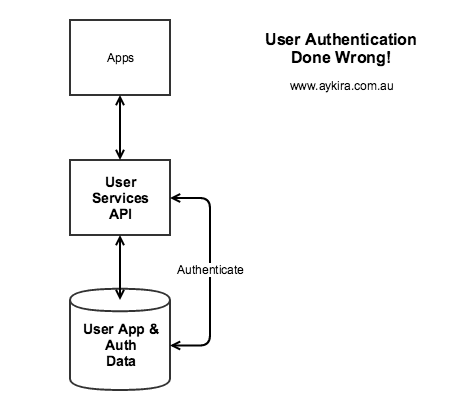 The other ‘win’ with this approach is you made the User Auth API into what I term potential ‘first class service’ in that you can freely change how you implement auth independently of anything else. For instance you could set up a new service or auth process for other usage cases. You could provide additional security or alerting without anyone else in your system architecture being impacted. It’s also an approach that would make it a lot easier to get security audit approval by a third party, as it is evident through design you have taken security into account.